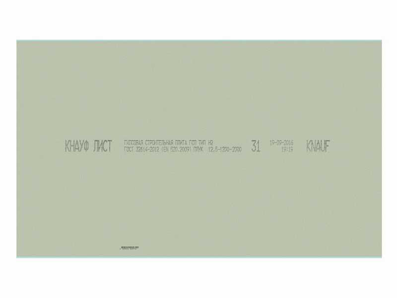 Гипсокартон Knauf 12.5x1200x2800 влагостойкий